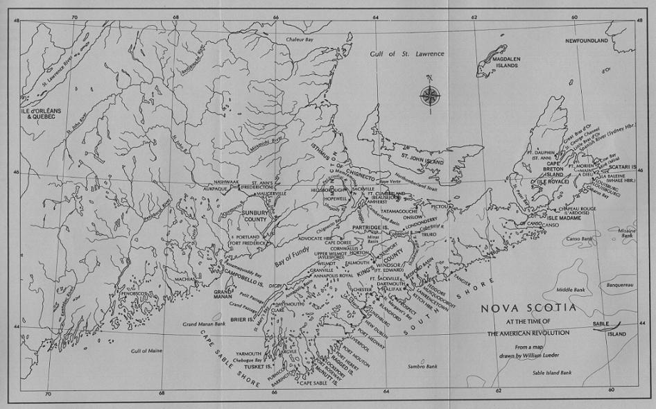 § The population of Nova Scotia (which at this time included part of present day New Brunswick): "Old British inhabitants," 14,000; "Old French Acadians," 400; and "Disbanded troops and loyalists, called new inhabitants" 28,347: For a total of 42,747.