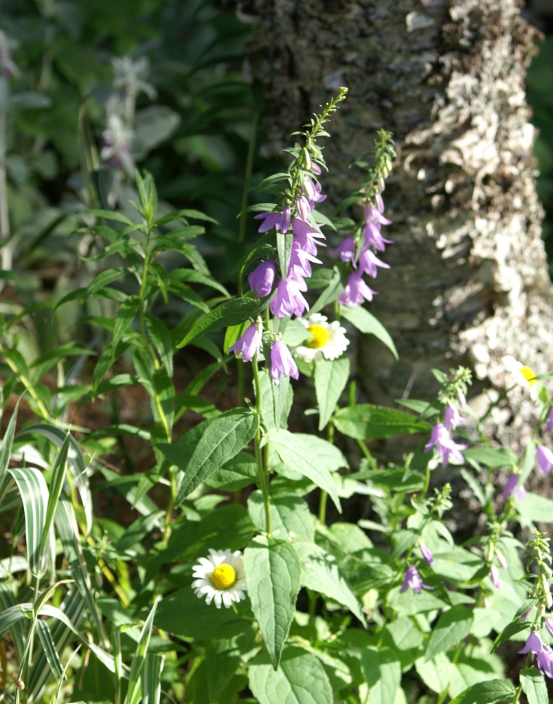 Though now common in the wild throughout, this particular variety of bluebell is a garden escapee and is alien to Nova Scotia. The rapunculoides is to be compared with the native variety, the Hare Bell (rotundifolia). The flowers of the two are very similar, except rapunculoides cluster up on an erect terminal spike; the flower of the rotundifolia is single on a frail little stem.